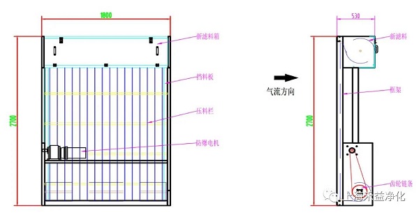 HRF-Ex防爆型自動卷繞式過濾器設(shè)計新穎,結(jié)構(gòu)合理,使用維護(hù)方便,便于運(yùn)輸和組裝。過濾器采用人字型或平面型結(jié)構(gòu),以增加有效過濾面積,滿足大風(fēng)量過濾設(shè)計要求。所用濾材強(qiáng)度高,化學(xué)穩(wěn)定性好,在火災(zāi)情況下燃燒時不產(chǎn)生有毒有害物質(zhì),經(jīng)久耐用。