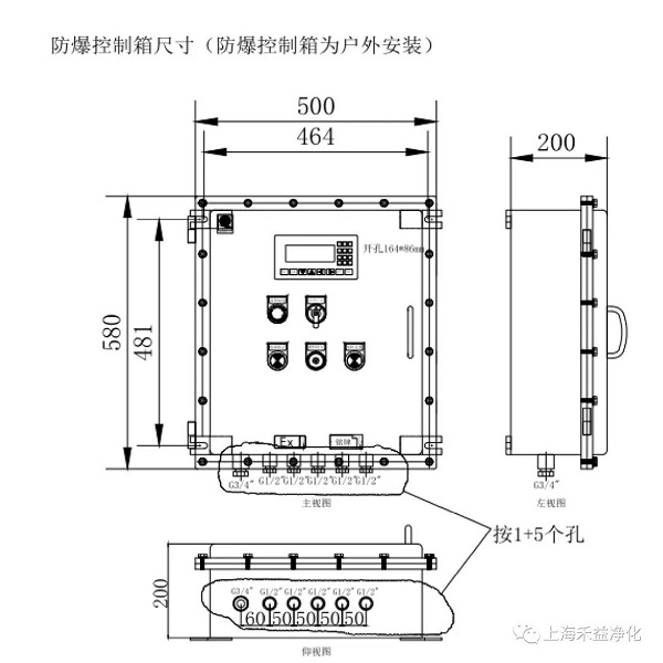 HRF-Ex防爆型自動卷繞式過濾器三視圖